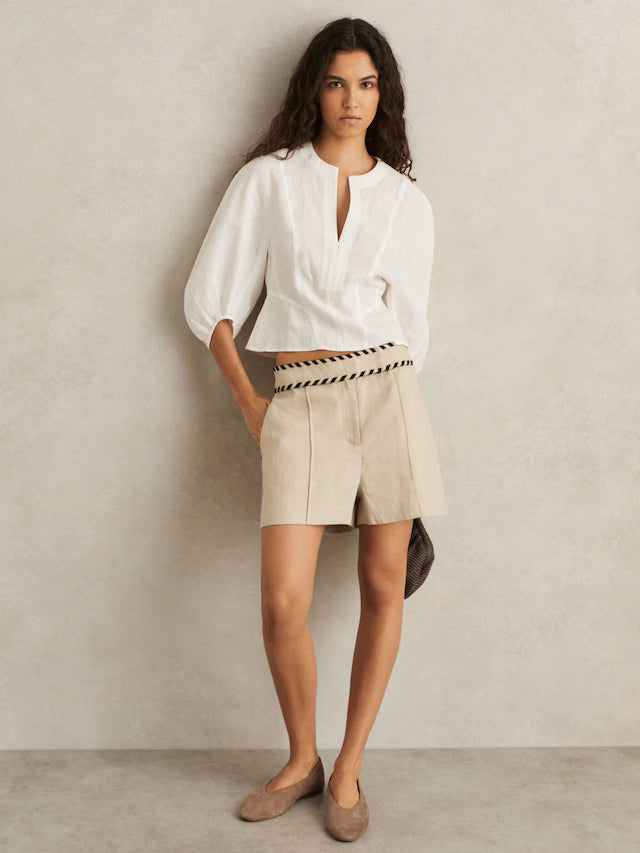 TAYLOR-Leather Rounded-Point Toe Ballet Flats in Taupe